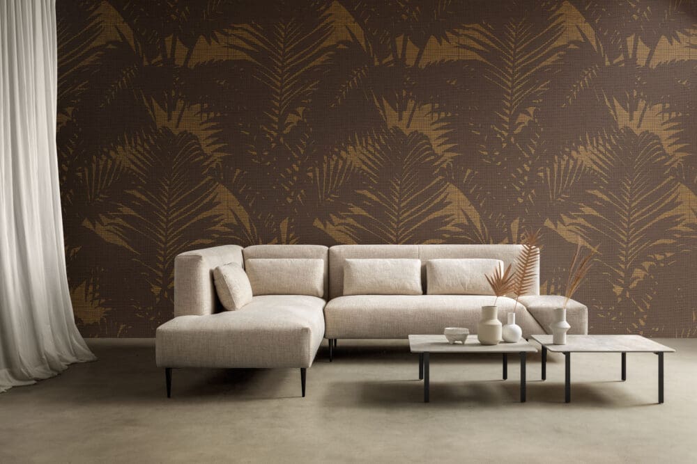 Il divano è realizzabile in tessuto, in pelle o in ecopelle, materiali proposti in una vasta gamma di texture e tonalità attuali e di tendenza; il divano in tessuto è completamente sfoderabile, mentre il divano in pelle o in ecopelle non è sfoderabile.